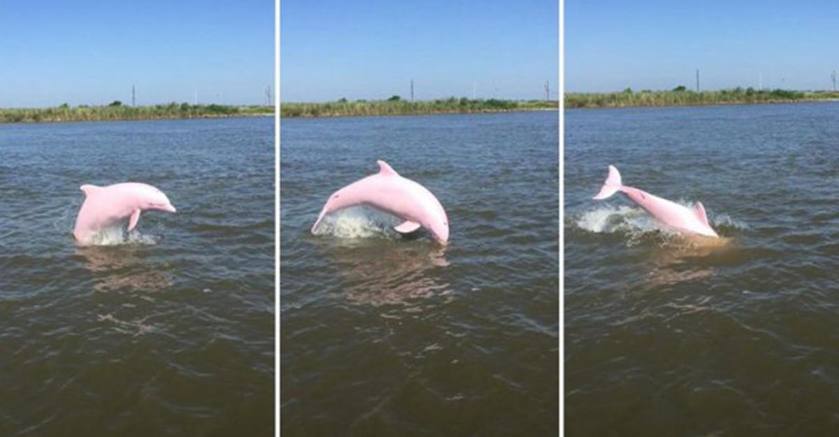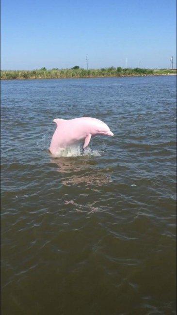 Пользователь одной популярной иностранной социальной сети выложил на своей странице фотографии редчайшего розового дельфина, который был запечатлен в озере Calcasieu, Луизиана, США, передает Day.Az со ссылкой на Billionnews.ru.