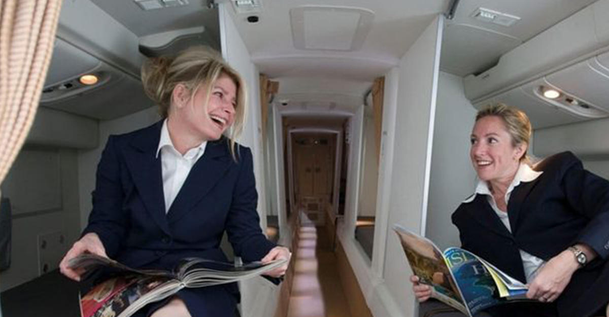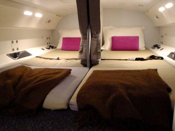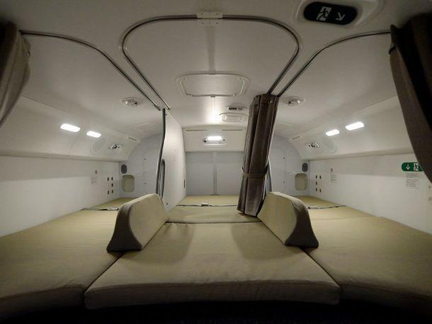Там стюардессы могут отдохнуть от пассажиров, поесть и принять горизонтальное положение.