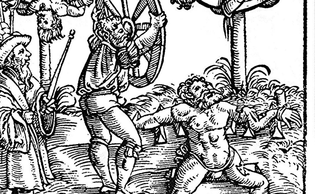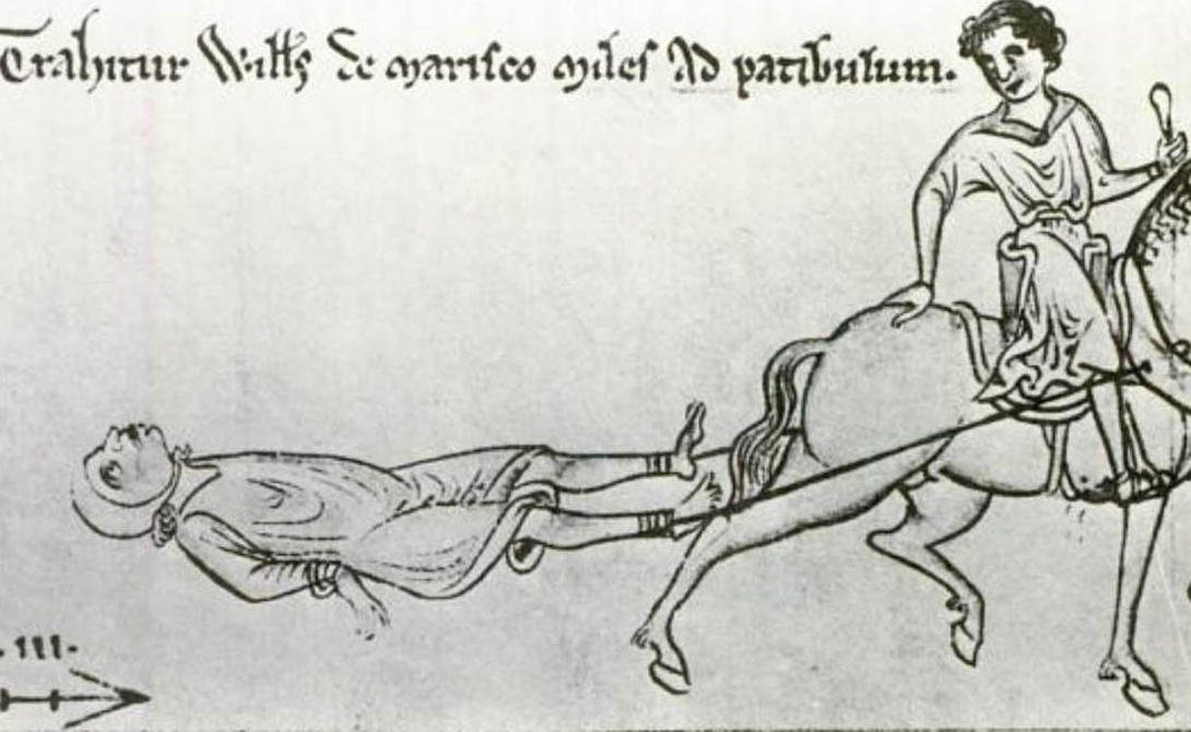 В средневековье англичане придумали одну из самых жестоких пыток в истории человечества. Она предназначалась тем, кто посмел предать родную страну. Потенциального шпиона подвешивали за шею, но не до смерти. Дав человеку вволю почувствовать вкус вечности, палачи снимали его с ветки и укладывали на полотно, предварительно привязав конечности к четырем лошадям. Приняв необходимые меры, мастер пыток кастрировал осужденного, вынимал внутренности и сжигал у него на глазах. В конце концов коней пускали вскачь и еще живого человека разрывало на части.
