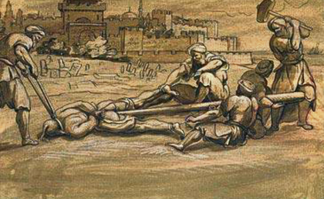Хитрые палачи догадались подвешивать пытуемого вверх ногами, чтобы кровь приливала к голове и поддерживала человека в сознании. Ноги жертвы растягивались, двуручной пилой изверги начинали распиливать жертву пополам. Иногда несчастный доживал до момента, когда зубчики пилы доходили до сердца.