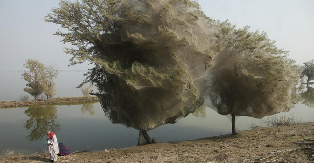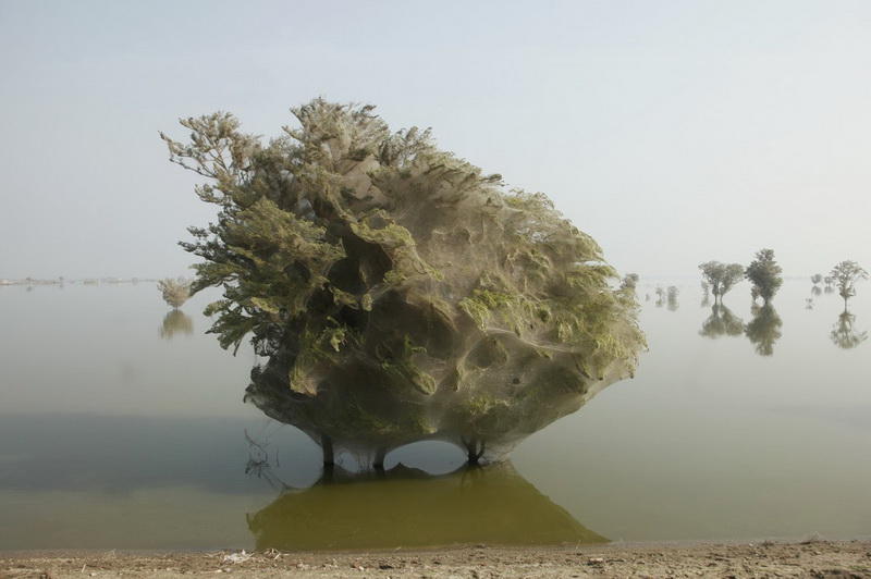 После наводнений в Пакистане многие пауки стараются спрятаться повыше, чтобы спастись от воды. Таким образом тысячи пауков забираются на деревья, оплетая их крону своей паутиной, передает Day.Az со ссылкой на Supercoolpics.ru. Такое удивительное зрелище можно увидеть не только в этой стране, но и в других тропических местах. К сожалению, некоторые деревья не выдерживают такой осады и гибнут от этого.