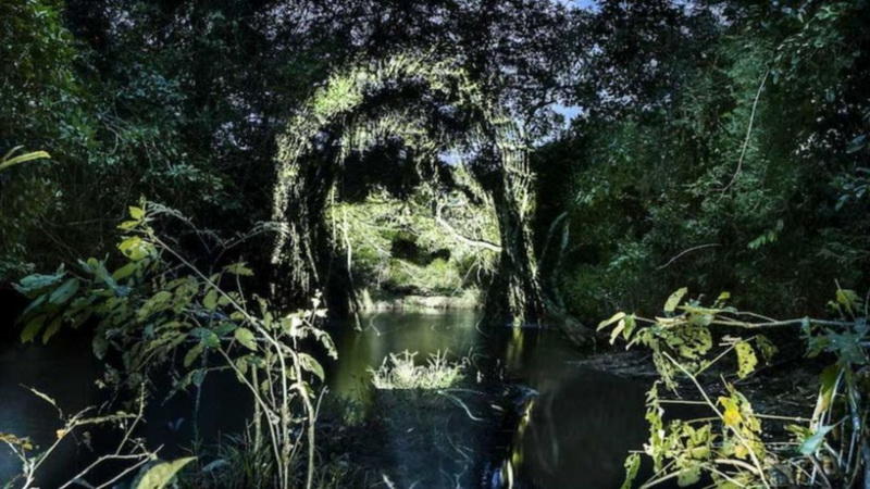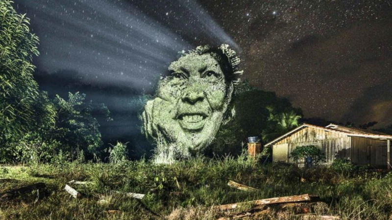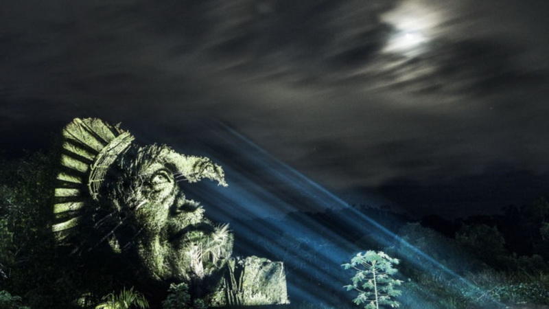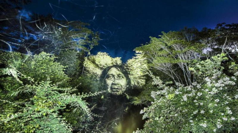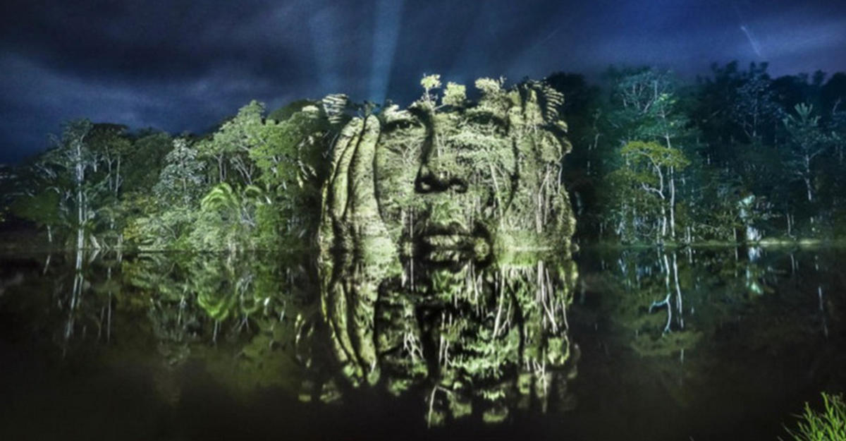Мольба о помощи: световые проекции портретов индейцев на фоне амазонских джунглей - ФОТО