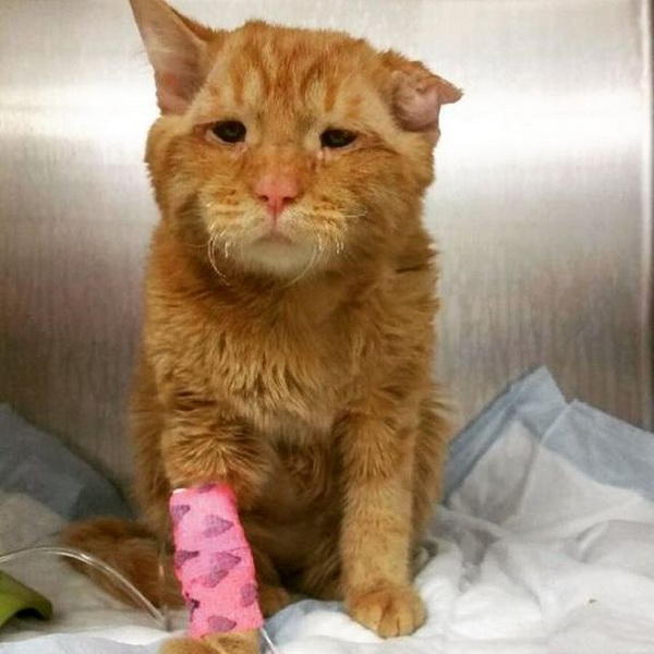 Хотя он еще на обезболивающих, этот некогда самый грустный кот определенно стал счастливым!
