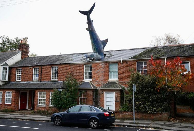 3. "Акула", застрявшая в крыше дома в Оксфорде, Британия