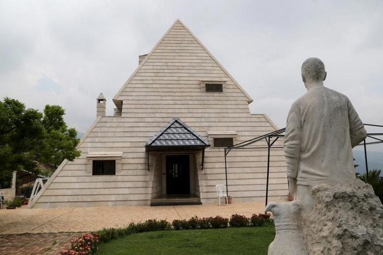 4. Дом в виде пирамиды и реалистичная статуя, стоящая напротив дверей, Ливан