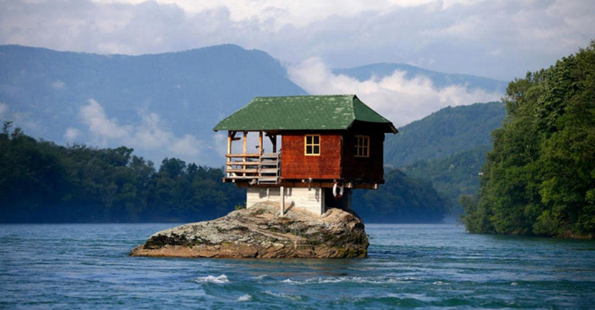 6. Дом, построенный на скале посреди реки Дрина, Сербия