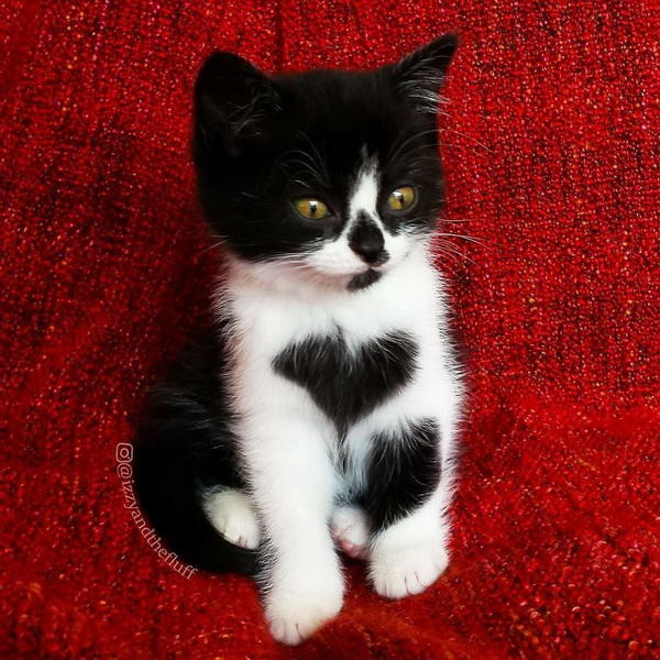Эту красивую кошку зовут Зои, и она носит сердце на груди с тех пор, как была крошечным чудесным котенком.