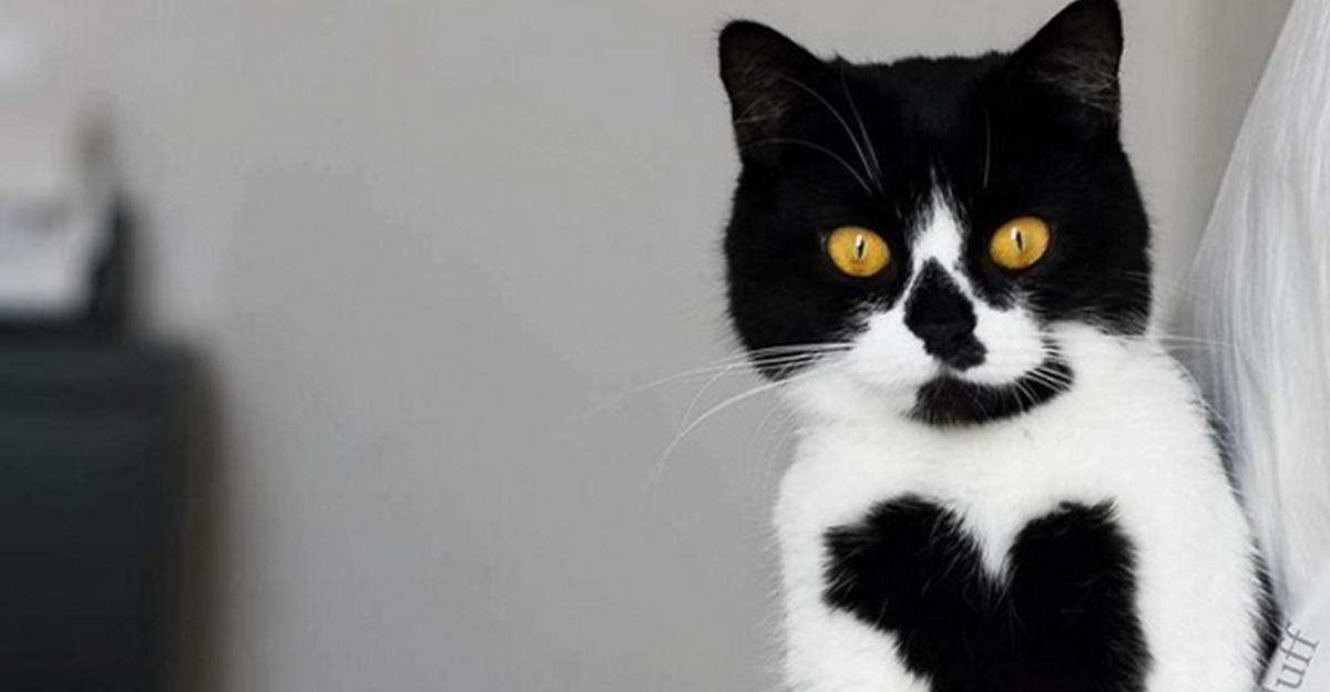 У этой кошки сердце на груди, и это очаровательно - 5 ФОТО