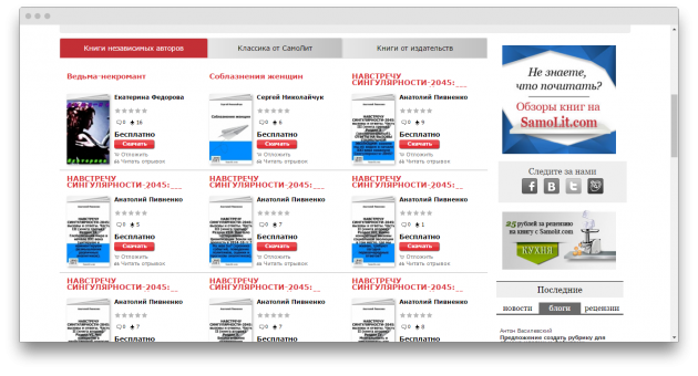 Ещё одна самобытная площадка, где нет преград между молодыми авторами и их поклонниками. Опять-таки всё бесплатно, при этом есть возможность сделать пожертвование. Более того, на сайте реализован функционал, с помощью которого можно подготовить текстовый файл к чтению на мобильном устройстве.