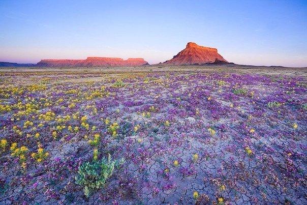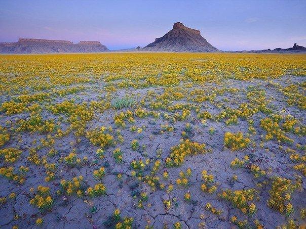 Бедленд - бесплодные земли на американском западе, при благоприятном стечении обстоятельств наполняются необычайным обилием цветов. Количество влаги, которая появляется в этих суровых местах, небольшое, поэтому зрелище это редчайшее.