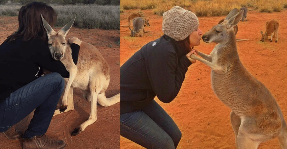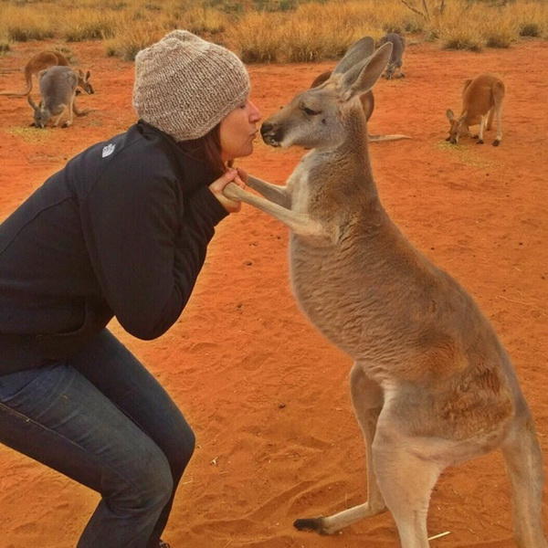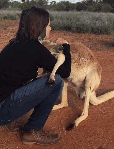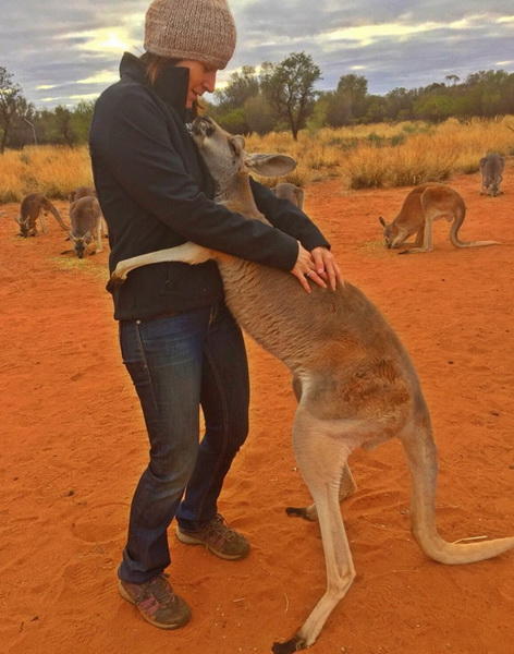 Самка кенгуру по имени Эбигейл, которая живёт в заповеднике Kangaroo Sanctuary Alice Springs в Австралии, каждый день с нежностью обнимает людей, которые о ней заботятся. Выглядит это очень мило и забавно. Спасённая кенгуру поступила в заповедник в возрасте пяти месяцев. С тех пор прошло уже 10 лет, но благодарная "королева заповедника" Эбигейл не устаёт напоминать окружающим, как сильно она их любит. Работники заповедника отвечают ей взаимностью и жизни своей без её нежностей уже не представляют.