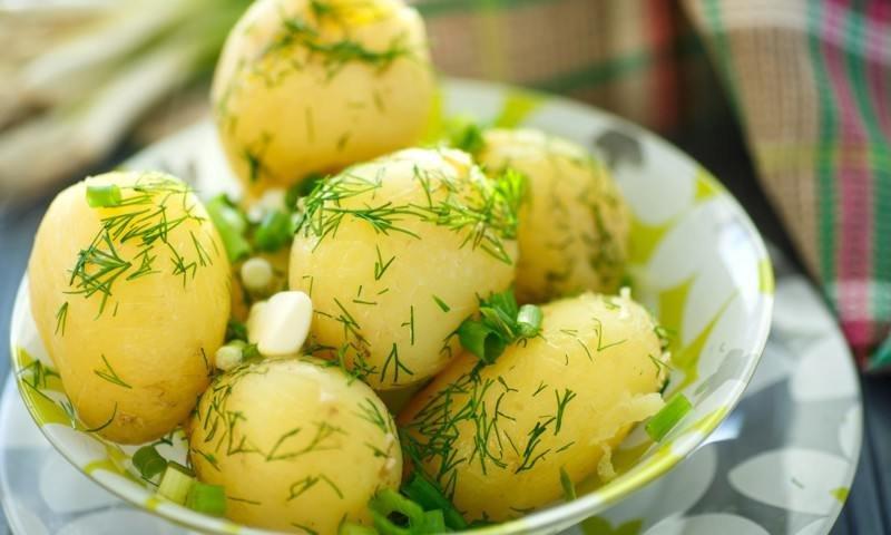 Итак... Кладём на тарелочки варёную картошку. Вилкою каждую картофелину чуть надламываем посередине, и кладём поверх сметану. Щедро посыпаем смесью зелени. Достаём ледяные рюмки, водку, и - производим налитие. Провозгласивши что-либо соответствующее, дружно опрокидываем оные рюмки.