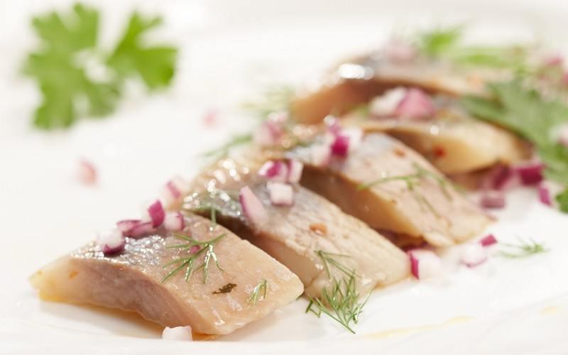 Пока картошечка варится, надобно подготовить селёдку. Обязательно - очень жирную, бочкового пряного посола. Аккуратненько чистим, лишаем костей абсолютно, режем на ломтики и укладываем на селёдочницу (удлинённо-овальную тарелочку с высотой бортов около 6-9 мм). Разложив её так, чтобы создавалось впечатление практически целой рыбёшки, сверху густо покрываем её тончайшими полуколечками репчатого лука (белого и красного), после чего сбрызгиваем (мало-мало, но так, чтобы на каждый кусочек попало) постным маслом (подсолнечным. И упаси вас Боги взять рафинированное! Только пахучее! Только!).