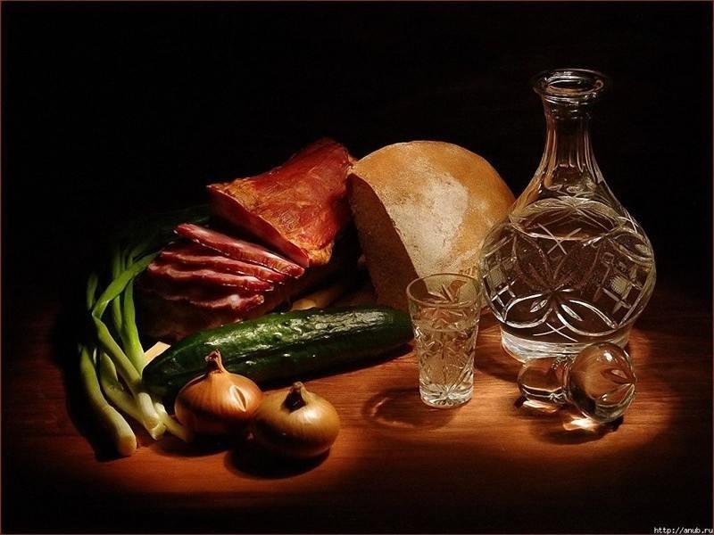 Естественно, что накануне была куплена сметана. На рынке! Густая! То, что называется - "ложка стоит"... Это - основа для получения вкуса водки. Остальные (по желанию) закуски могут подаваться не раньше, как только после третьей рюмки. Закурить (опять же по желанию) - тоже.