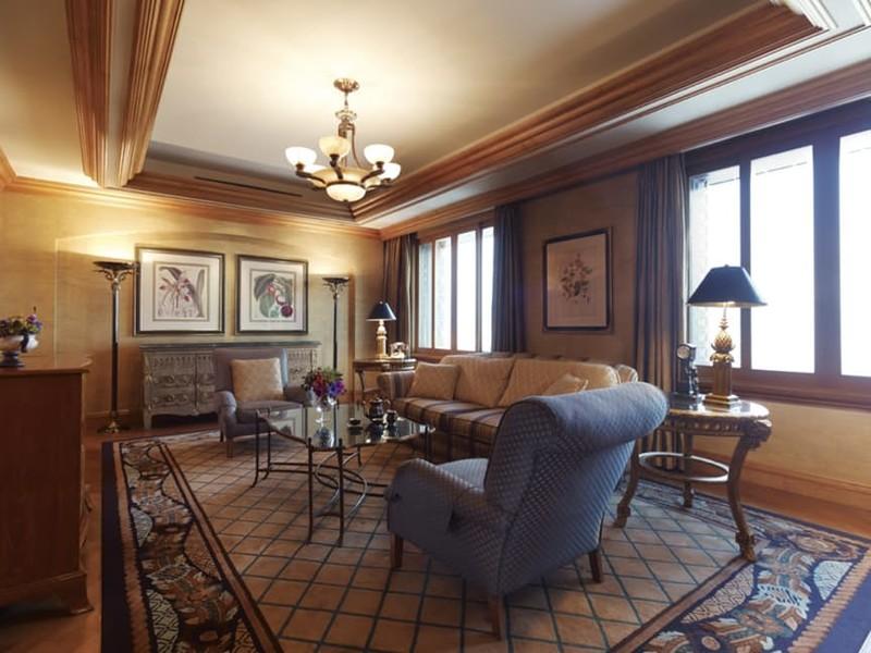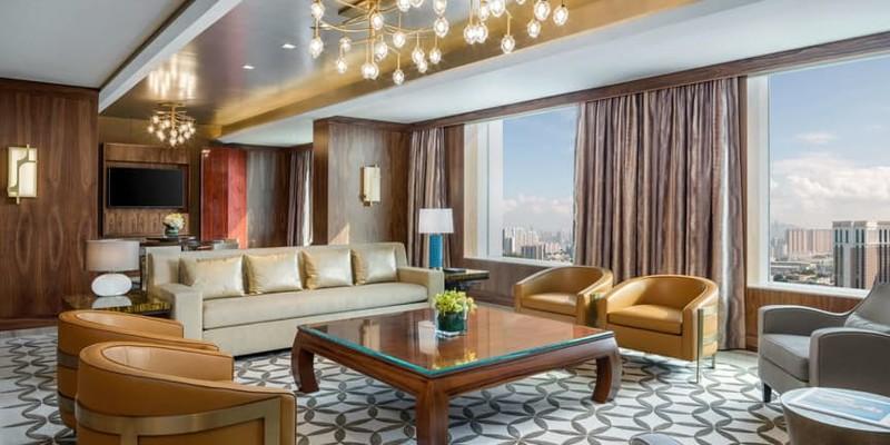 В этом номере всего одна спальня, но он все равно может считаться одним из самых просторных, красивых и шикарных сьютов в Азии. Огромные окна высотой от пола до потолка впускают в комнату достаточно естественного света днем, а ночью постояльцам создают настроение великолепные дизайнерские светильники. В огромной спальне имеется ванная комната в стиле СПА и ванна-джакузи. Рядом - гардеробная. В элегантной столовой с комфортом разместятся восемь человек, а гостиная выглядит как истинное воплощение комфорта. Есть здесь и кабинет, и дамская туалетная комната, и буфетная. Номер стоит $20 000 за ночь и подходит любому, кто хочет жить с истинным шиком в ходе поездки в Китай.