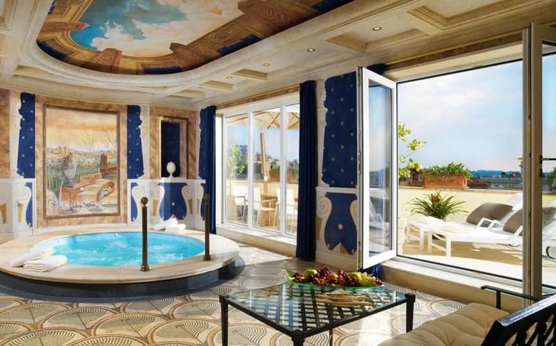 Шикарные апартаменты Villa La Cupola располагаются на пятом и шестом этажах римского отеля Westin Excelsior. Они занимают около 1100 кв.м, делая сьют одним из самых больших в Европе. Здесть имеется семь просторных террас, где гости могут принимать солнечные ванны и предаваться иным удовольствиям с шикарным видом на Рим. Уникальный дизайн гостиной с потолком в виде купола, панели из древесины грецкого ореха, покрытые ручной резьбой, украшающие библиотеку, домашний кинотеатр с новейшей системой "звук вокруг" и всеми возможными аудиовизуальными эффектами, собственная кухня и столовая - и это еще не все! Особенно гостям нравится собственный винный погреб на 160 бутылок белого и красного итальянского вина. Кроме того, в их распоряжении - отдельный лифт и красивейшая мраморная лестница, прекрасно оборудованный тренажерный зал, хамам, сауна и бассейн-джакузи. Такое идеальное место для вечеринок вполне стоит своих $30000 за ночь.