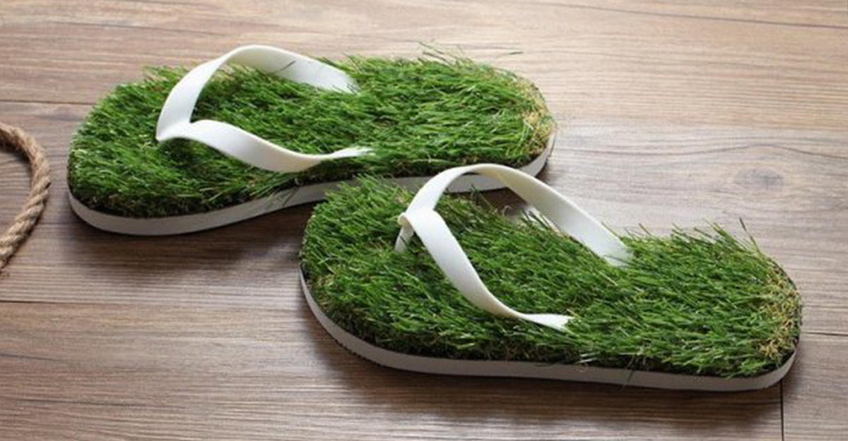 А этот подарок будет хорош для тех, кто скучает по тёплым летним денькам и Новый год ждёт только потому, что тот неумолимо приближает наступление лета. Трава в таких тапках, конечно же, искусственная, но на ощупь и на вид как настоящая. Она создаст ощущение лета и тепла, даже когда за окном неистовствует лютый мороз.