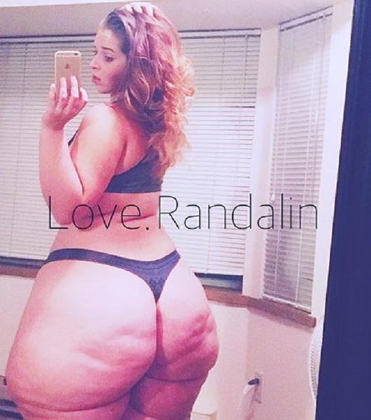 Рандалин не стесняется ни целлюлита, который обильно покрывает ее выдающиеся формы, ни разительного контраста между размерами ее бедер и плеч.