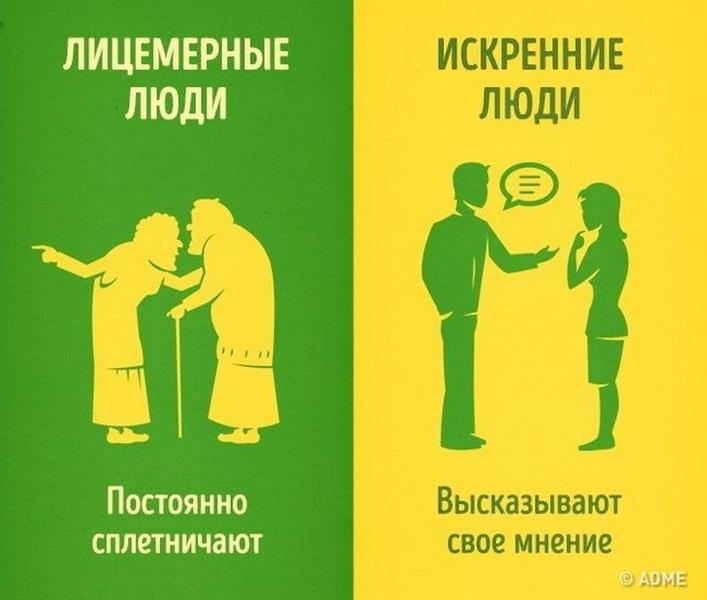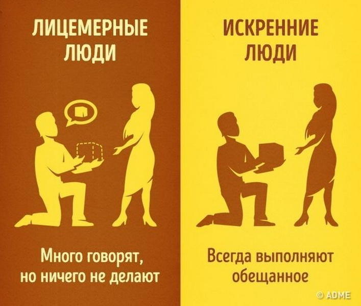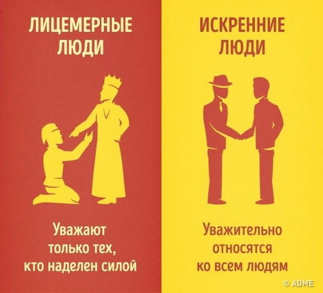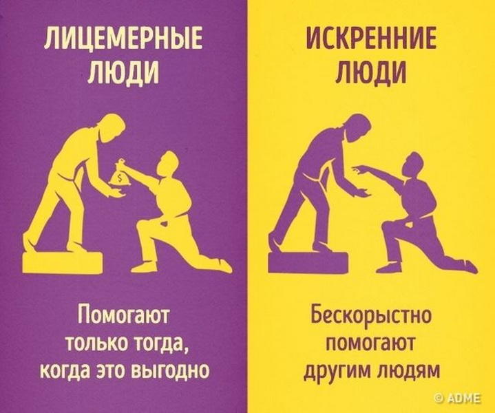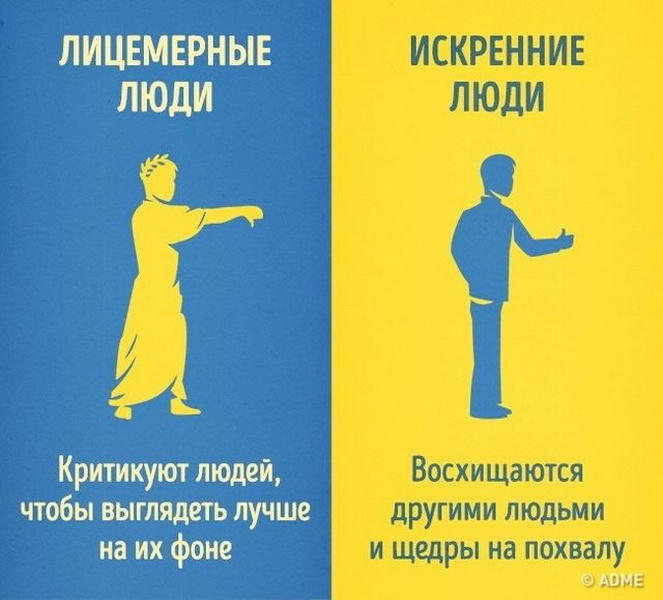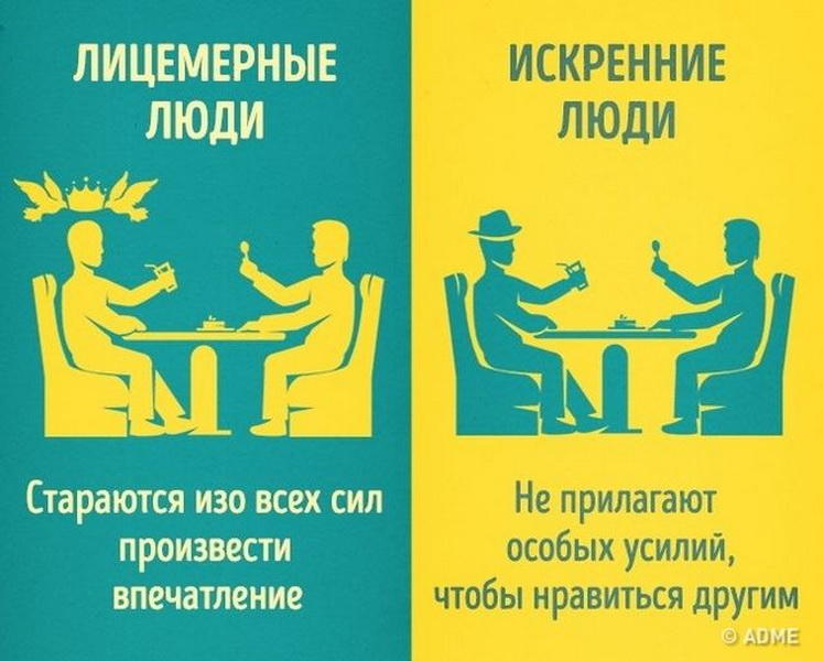 Вот шпаргалка, которая наглядно демонстрирует разницу между искренним человеком и лицемером.