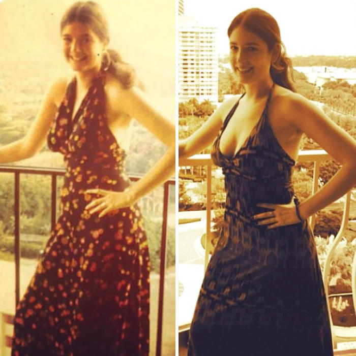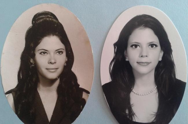 25 лет спустя: дочь в том же платье, что и мать, в том же возрасте.