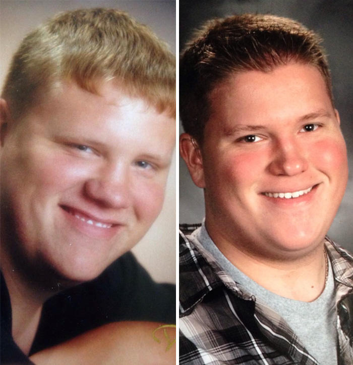 Отец с сыном в 1991 году и выросший сын с котом в 2013-м.