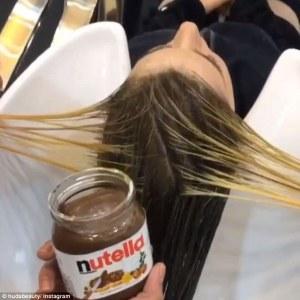 В коротком видео дубайского бьюти-блоггера Худа Каттан, в салоне красоты светлые волосы девушки сначала моют, покрывают смесью Nutella и сгущенного молока, заворачивают пряди в фольгу, а через некоторое время снимают ее и смывают шоколадную смесь, после чего волосы принимают ореховый оттенок.