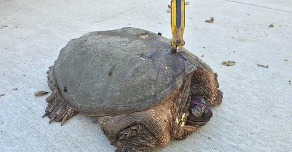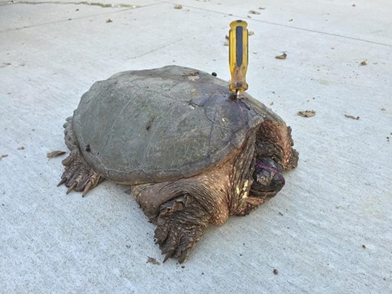 В эту черепаху кто-то воткнул отвертку. Но она не сдавалась - 4 ФОТО
