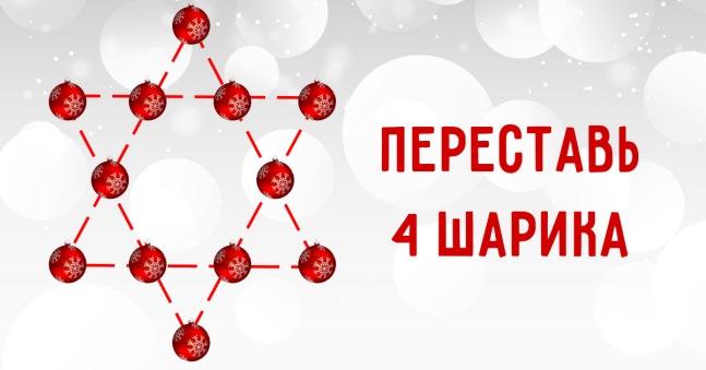 А теперь правильный ответ. Шарики нужно переставить таким образом, чтобы получилось графическое подобие елочки!