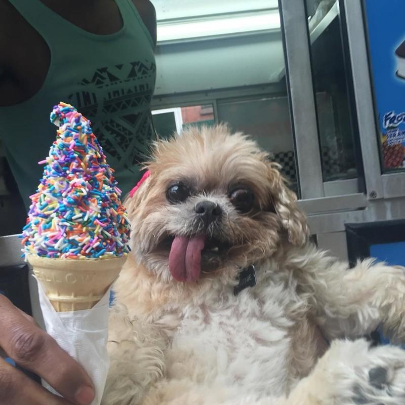 Знакомьтесь, 15-летняя ши-тцу Марни, которую 5 лет назад нашли на улицах Коннектикута, определили в приют и из-за сильного запаха обозвали Вонючкой. Проведя в приюте четыре месяца, слепая на левый глаз собака с вестибулярным синдромом нашла свою новую хозяйку Ширли, новый дом в Нью-Йорке и новое имя в честь гитаристки Марни Стерн.