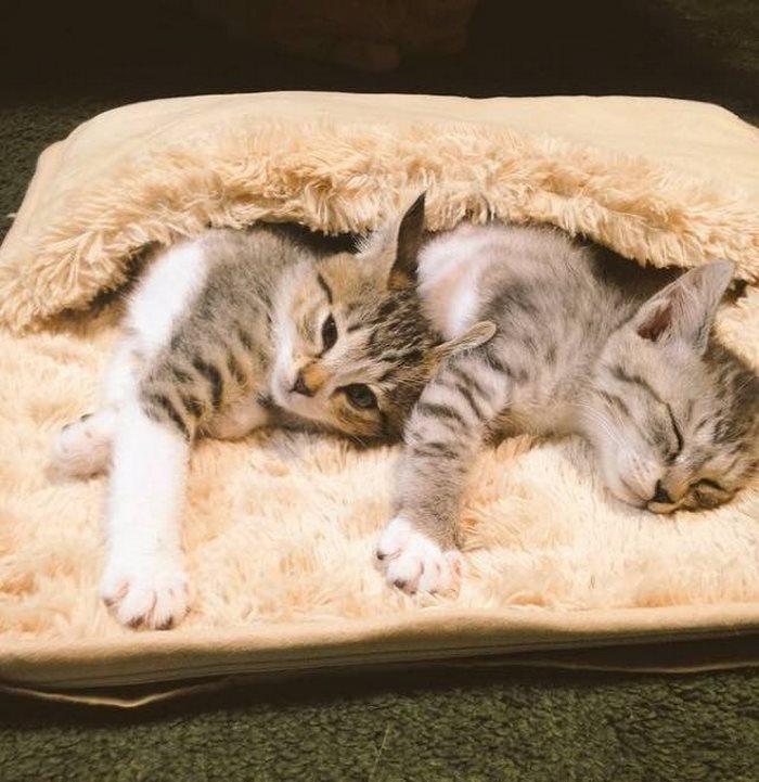 Оказалось, истинное назначение грелки для ног - согревать котят.