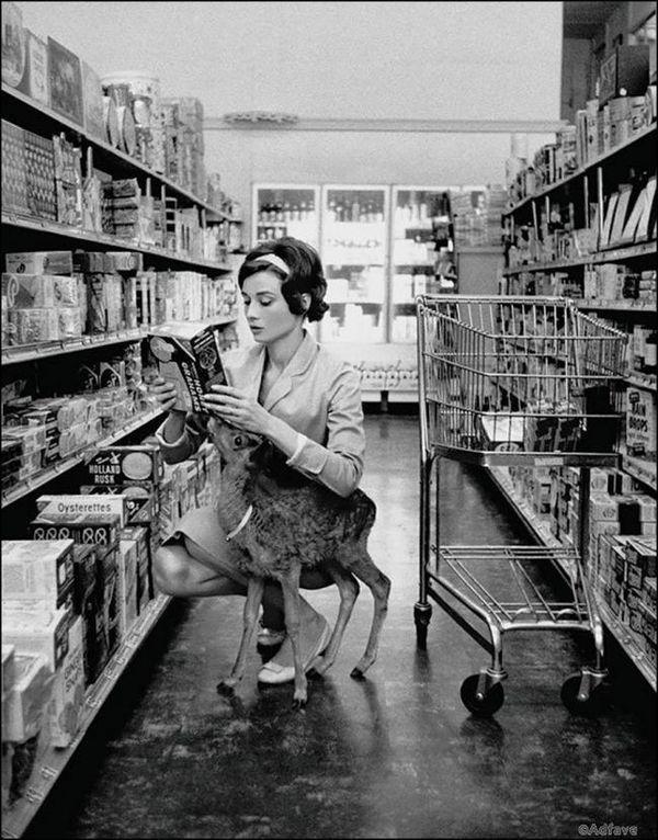 Одри Хепбёрн делает покупки со своим олененком, Беверли Хиллз, 1958.