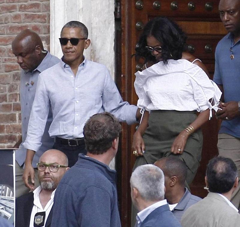 Бывший президент США Барак Обама вместе со своей женой Мишель посетил город Сиена в Тоскане. Их встретили как голливудских звезд. Бывшая первая леди выглядела по-особенному кокетливо, выйдя в свет в топике с открытыми плечами и брюках цвета хаки с высокой талией.