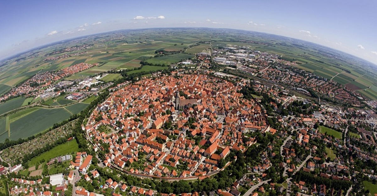 8. Нёрдлинген, Германия, город, построенный внутри кратера, образовавшегося в результате падения метеорита на Землю около 14 миллионов лет назад.