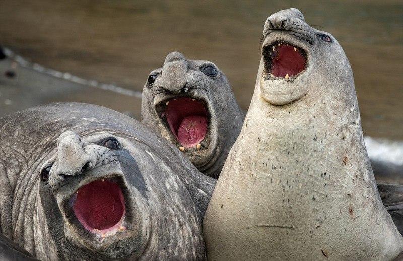 1. Трио морских слонов - оперных певцов. "Три тенора". Руи Галиц. 7 января 2016 года. Южная Георгия