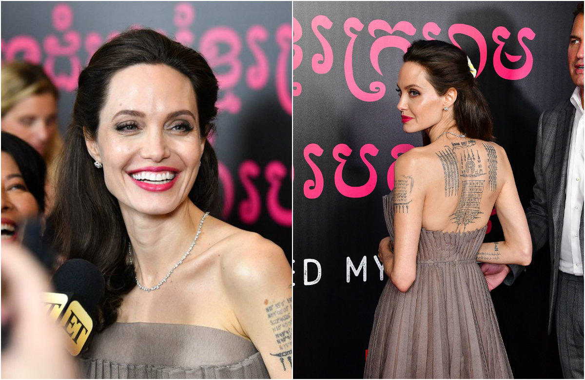 Джоли в шикарном платье показала татуировки на спине: вот, что они значат - ФОТО