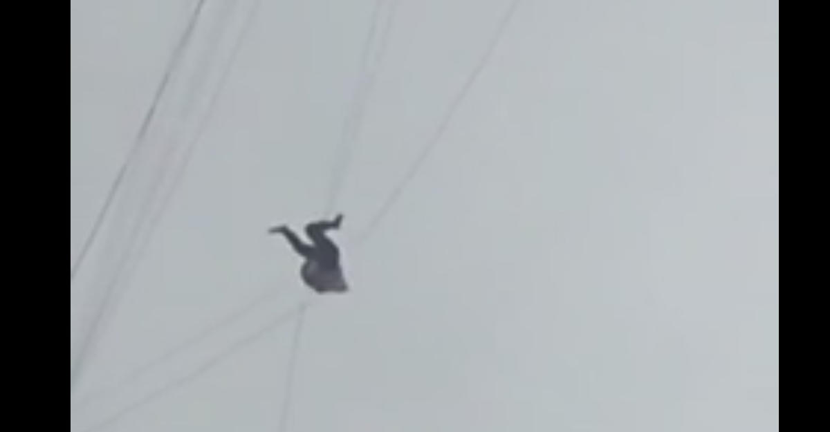 На опубликованном видео видно, как он попробовал перелезть по телефонному проводу к зданию на противоположной стороне улицы.