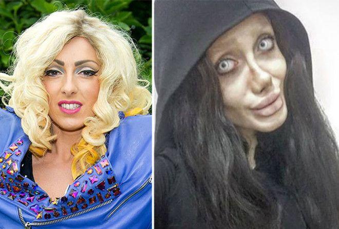 Фотографии этой иранки недавно поразили весь Интернет. Трудно поверить, но Сахар Табар (Sahar Tabar) всего 19 лет, и к этому возрасту она перенесла уже более 50 пластических операций. По мнению Сахар, сейчас она выглядит "как две капли воды" похожей на Анджелину Джоли. Пользователи Интернета сходятся во мнении, что девушка больше похожа на героиню мультфильма Тима Бертона "Труп Невесты." Девушка весит около 40 килограммов, часто надевает голубые контактные линзы и обильно пользуется косметикой. В ее представлении она прекрасна, а все негативные комментарии - это просто результат зависти.