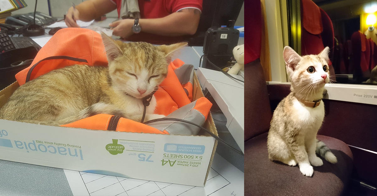Во Франции котенок пристал к проводнику. Тот покатал его на поезде и помог найти хозяйку