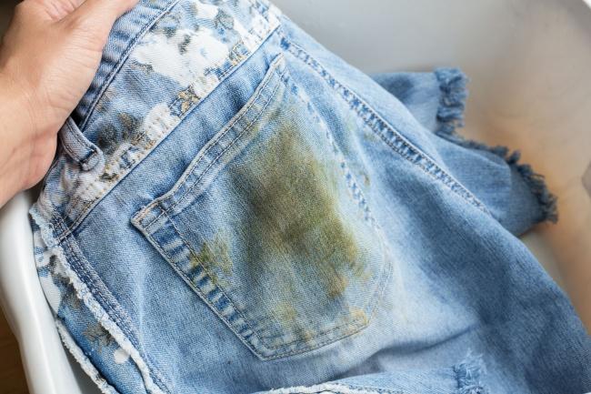 Следы от травы легко удалить, если соединить жидкое мыло и перекись водорода