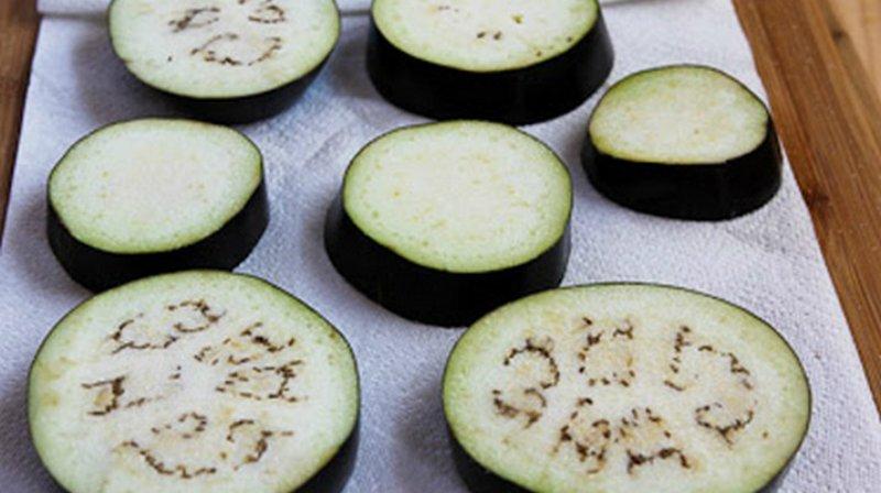 Извлеки баклажаны из воды, обсуши на бумажном полотенце. Тем временем разогрей духовку до 180 градусов.