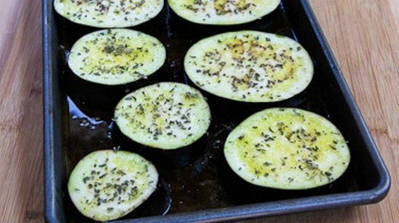 Выложи баклажаны на противень, посыпав прованскими травами, запекай 20 минут.